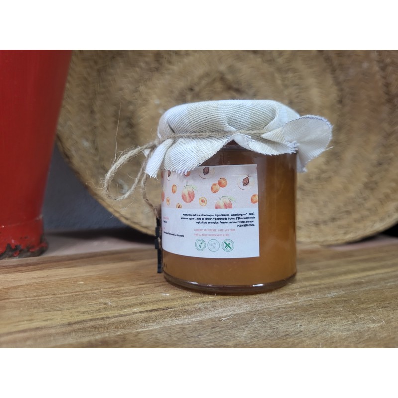 Descubre la suavidad y el sabor auténtico de nuestra mermelada ecológica de albaricoque, elaborada con frutas procedentes de agricultura ecológica y recolectadas en su punto ideal de maduración. Gracias a su preparación según recetas tradicionales y a una cocción mínima, conserva todo el aroma, color y dulzor natural del albaricoque, logrando una mermelada con máximo contenido en fruta y mínimo en azúcares.
