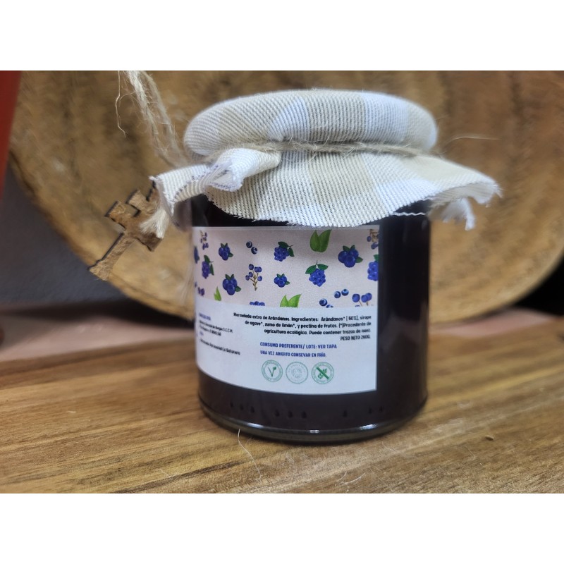 Elaborada con ingredientes ecológicos: arándanos*, sirope de ágave*, zumo de limón* y pectina de frutas. (*) De cultivo ecológico certificado.